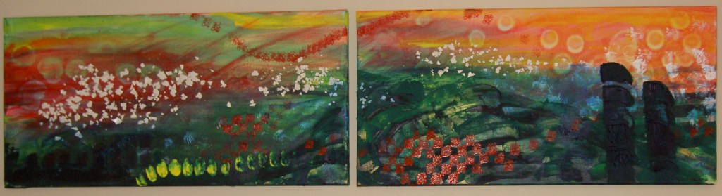 Acrylic on canvas. 12″ x 49″. This was my Dad’s favorite painting of mine. Wistful sky with finger prints.