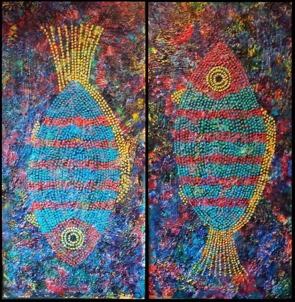 49″ x 24″ Mixed Media. Matched pair. Shimmering!