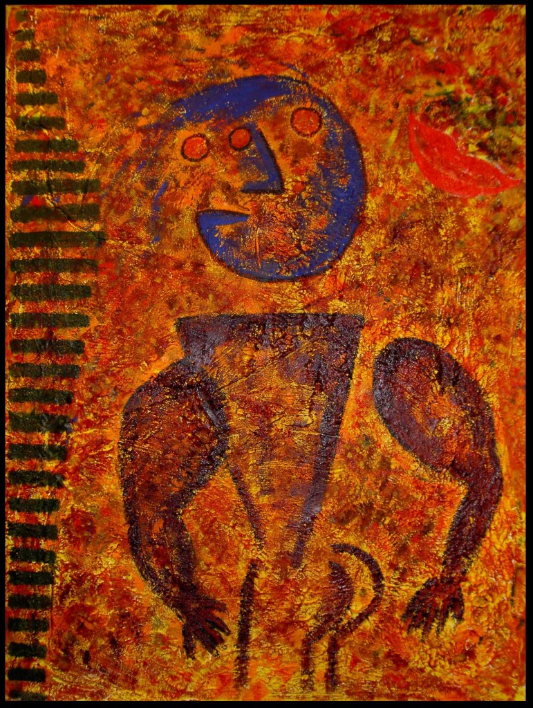 49″ x 37″ mixed media. The working title of this one was “Butt Man”. But his smile made him “Blue in the Face”. Fun stripes on the side to balance a powerful image and those lips. Oh, those lips!